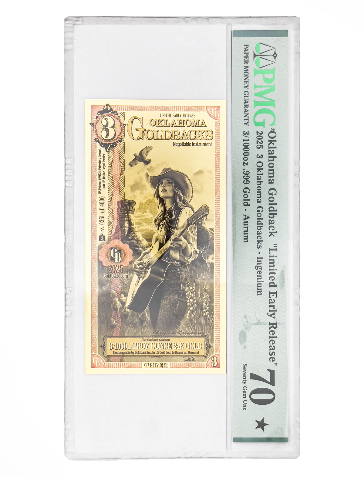 The 3 Oklahoma Limited Early Release Goldback Note Artwork: